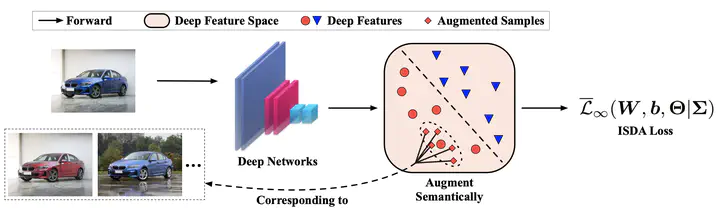 In this paper, we propose a novel implicit semantic data augmentation (ISDA) approach to complement traditional augmentation techniques like flipping, translation or rotation. Our work is motivated by the intriguing property that deep networks are surprisingly good at linearizing features, such that certain directions in the deep feature space correspond to meaningful semantic transformations, e.g., adding sunglasses or changing backgrounds. As a consequence, translating training samples along many semantic directions in the feature space can effectively augment the dataset to improve generalization. To implement this idea effectively and efficiently, we first perform an online estimate of the covariance matrix of deep features for each class, which captures the intra-class semantic variations. Then random vectors are drawn from a zero-mean normal distribution with the estimated covariance to augment the training data in that class. Importantly, instead of augmenting the samples explicitly, we can directly minimize an upper bound of the expected cross-entropy (CE) loss on the augmented training set, leading to a highly efficient algorithm. In fact, we show that the proposed ISDA amounts to minimizing a novel robust CE loss, which adds negligible extra computational cost to a normal training procedure. Although being simple, ISDA consistently improves the generalization performance of popular deep models (ResNets and DenseNets) on a variety of datasets, e.g., CIFAR-10, CIFAR-100 and ImageNet. Code for reproducing our results is available at https://github.com/blackfeatherwang/ISDA-for-Deep-Networks.